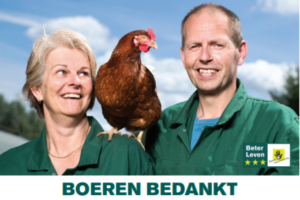 “Boeren bedankt” is het opvallende thema van de Beter Leven week waaraan dit jaar voor de vijfde keer door vrijwel alle supermarkten van 23 tot 30 oktober met allerlei acties wordt meegedaan. Opvallend, omdat de Beter Leven week een initiatief is van de Dierenbescherming die hiermee haar keurmerk voor een diervriendelijkere productie extra in het zonnetje zet. “Het ligt niet direct voor de hand dat wij als Dierenbescherming boeren bedanken, maar het is in dit geval meer dan terecht”, zegt Marijke de Jong die bij de Dierenbescherming verantwoordelijk is voor het Beter Leven keurmerk. “Het gaat ons dan natuurlijk wel om alle boeren die de afgelopen tien jaar hebben bijgedragen aan het diervriendelijker maken van de veehouderij”. Volgens De Jong zijn dat de boeren die hun nek hebben uitgestoken door dieren meer ruimte te geven en meer mogelijkheden om hun natuurlijk gedrag te tonen.